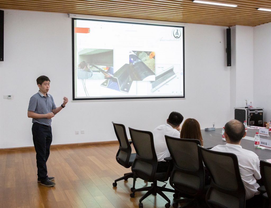 长安大学工程机械学院机械电子系主任王斌华,工程机械系主任朱雅光,机械制造系副主任刘清涛,长安学者特聘教授程海鹰,公路装备系副教授、PG国际集团在站博士后陈一馨,办公室主任梁佳,党委秘书冯延清,机械设计系秘书万一品,机械电子系教师向清怡、任娟分别就相关项目及研发方向作详细介绍。