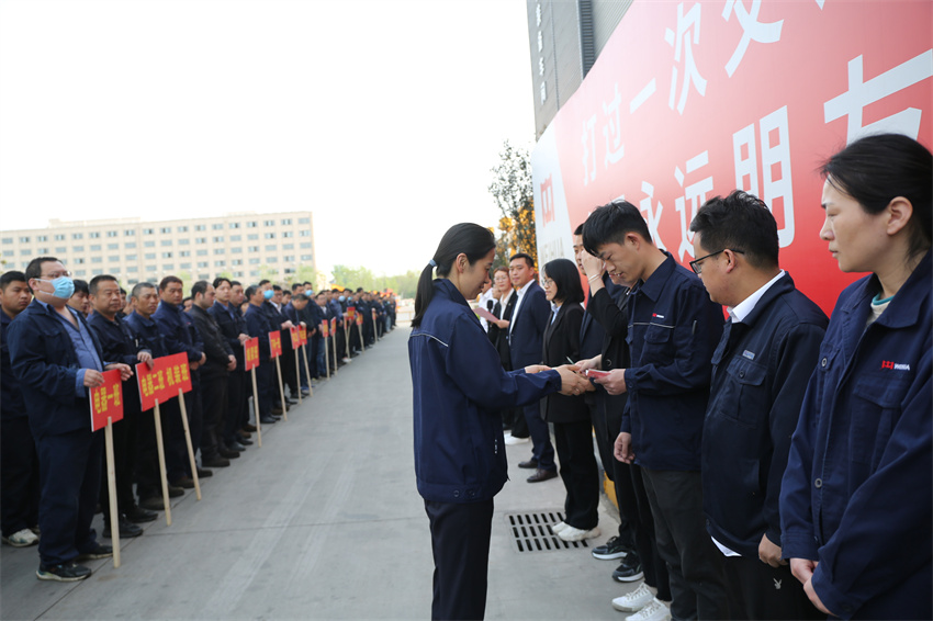 为切实增强全体一线员工质量安全工作的使命感、紧迫感和责任感,努力开创公司高质量发展新局面,2023年4月19日,河南PG国际重型机械股份有限公司召开2023年一季度质量安全奖励大会,执行总裁谢保华,质量安环中心总监钮鹏超,制造管理中心副总监代艳云、孙朋,以及生产系统各部门负责人和全体一线员工参加会议。会议由质量安环中心副总监王爽主持。