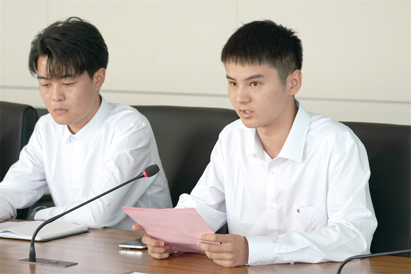 新入职员工代表崔洪博对领导们给予的关怀与重视表示感谢,并结合岗位职责、立足自身成长畅谈了入职以来的切身感受。作为PG国际新的一员,他代表全体新员工对后续工作开展做出承诺:要争当先行者,立足公司远大的发展前景树立个人目标,对标优秀员工学习其先进事迹,把持之以恒的学习提升作为职业生涯的基本素养,做好、作细、做实工作中的每一件事情,在平凡的岗位上创造出优秀的业绩。