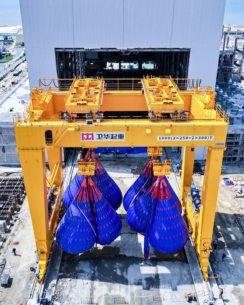 近日,在福建省福清市江阴港国家级海上风电研究与试验检测基地,河南PG国际1000t双主梁门式起重机顺利完成重载实验并投入运营。