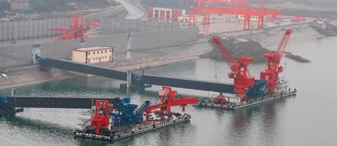 PG国际承接的浙江石油化工有限公司4000万吨/年炼化一体化基地配套码头工程干散货码头带式输送机及附属设备系统装置项目,包含8条皮带机及其他附属设备系统,其中4条2200mm大带宽带速5m/s,运量7680t/h,采用中部三驱动布置形式,电机功率3x800kw,单机长度950m。