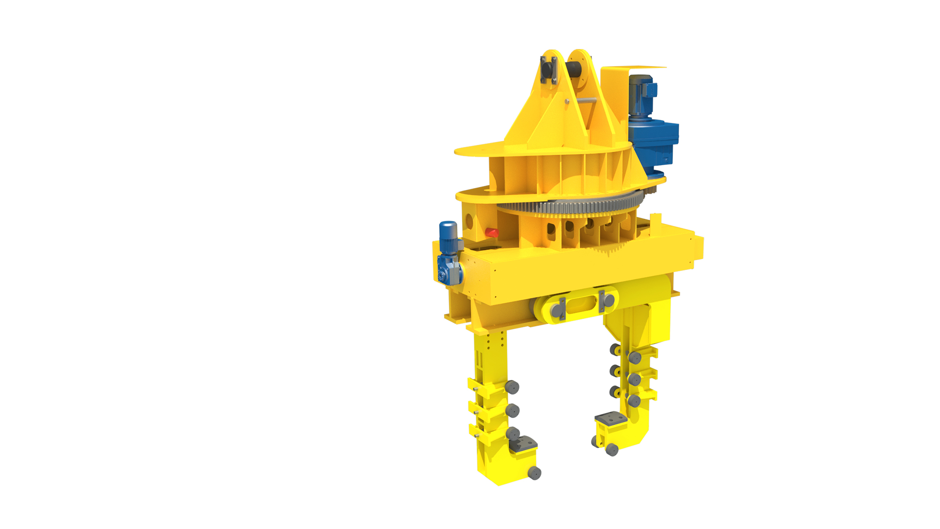 三丝杠伸缩臂机构,270°旋转,多组可调尼龙滚轮护卷机构。