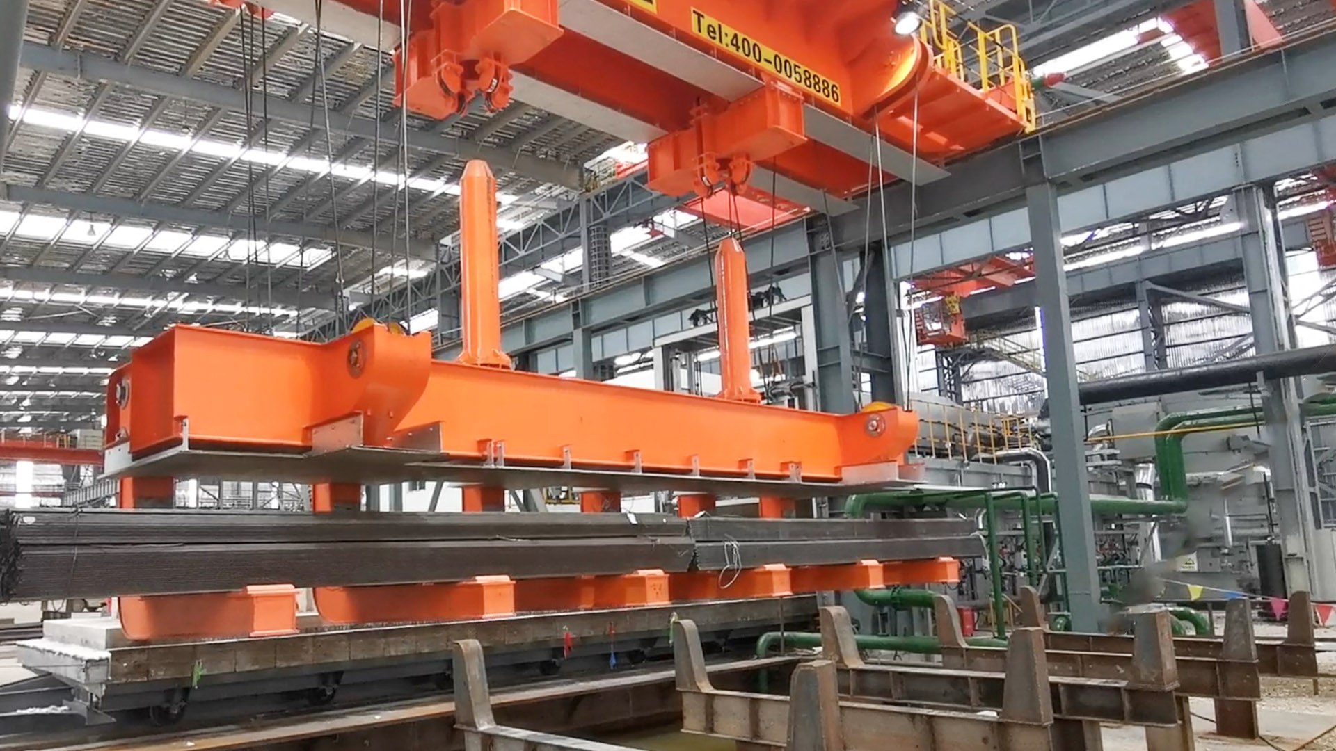 PG国际智能淬火起重机主要用于高温型材或棒材的吊装并进行淬火工艺。